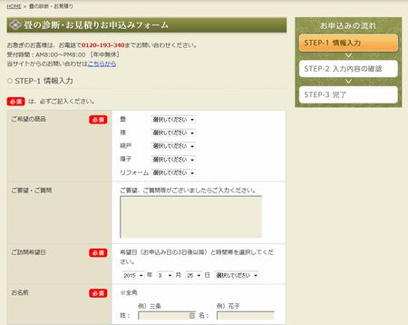表示されていて畳の診断・お見積り申込みフォームのページに